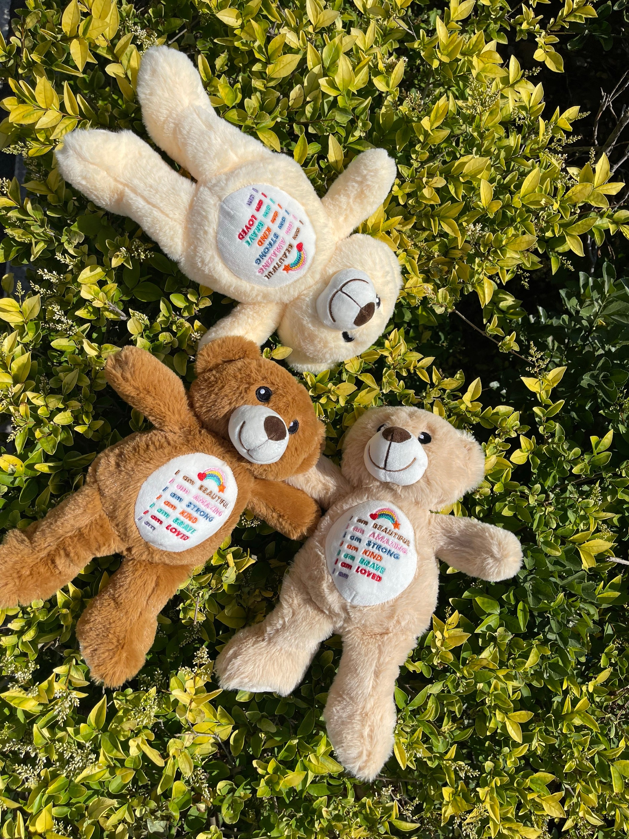 Sunny is more than a teddy bear. He carries gentle affirmations on his tummy - reminders I wish every child could hear every day:
